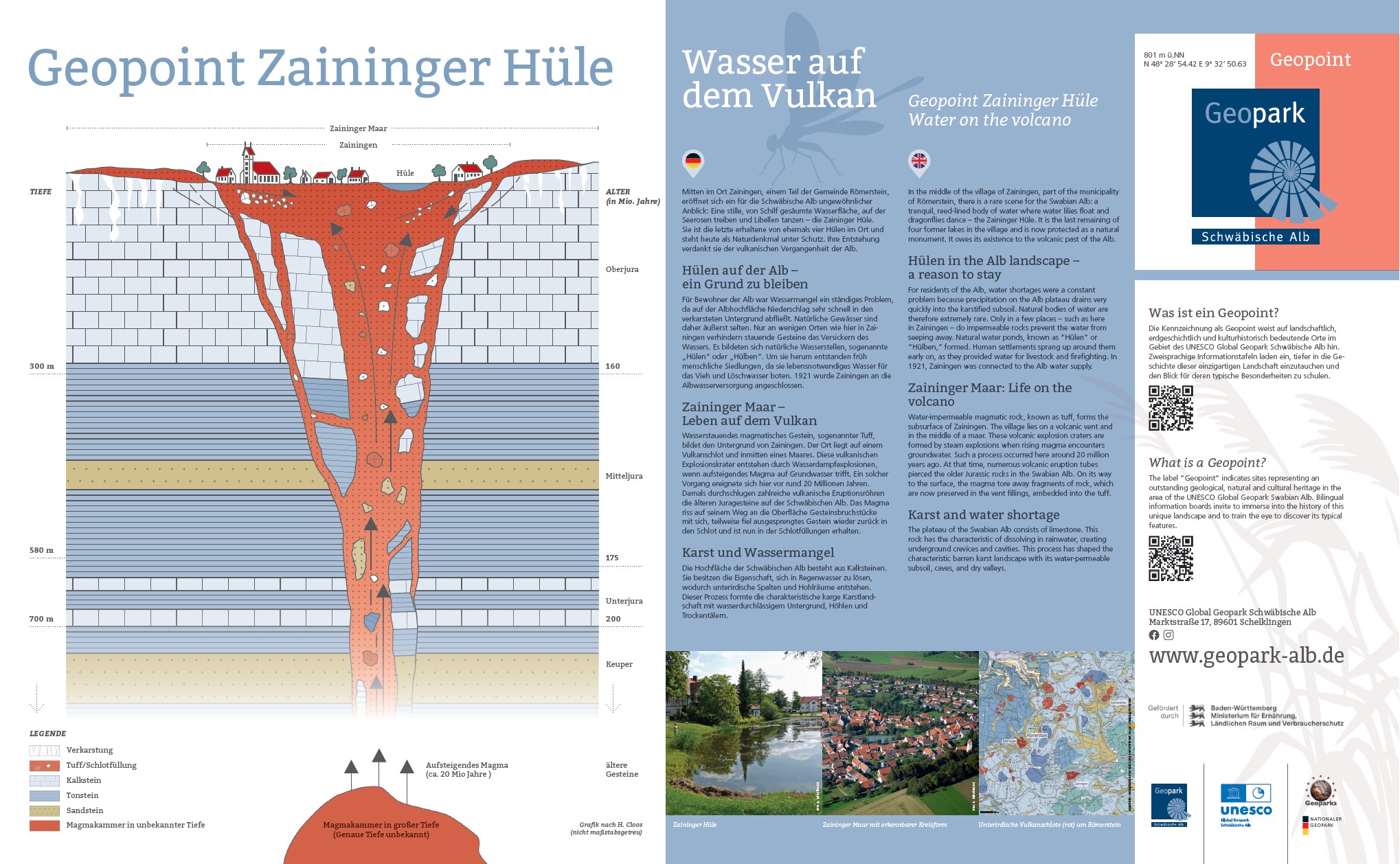 Mitten im Ortszentrum von Römerstein-Zainingen wurde die Zaininger Hüle als 40. Geopoint des UNESCO Geoparks Schwäbische Alb eingeweiht. Der kleine See ist ein flächenhaftes Naturdenkmal und Geotop von besonderer geologischer und kulturhistorischer Bedeutung.